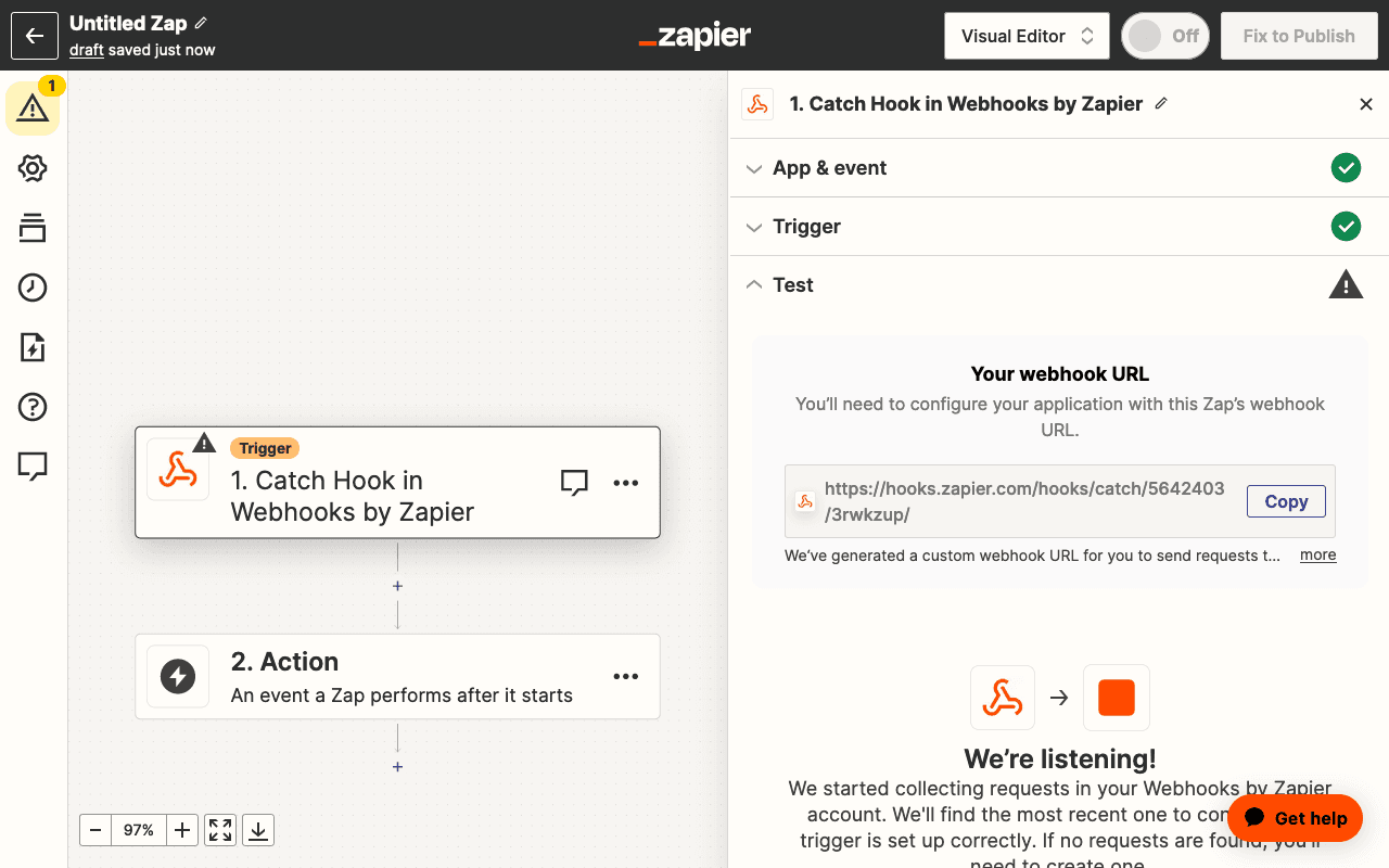And there you have it—a complete guide to sending webhook requests to Zapier from a Blutui project. You can learn more about how to setup an Action in Zapier from their help center.